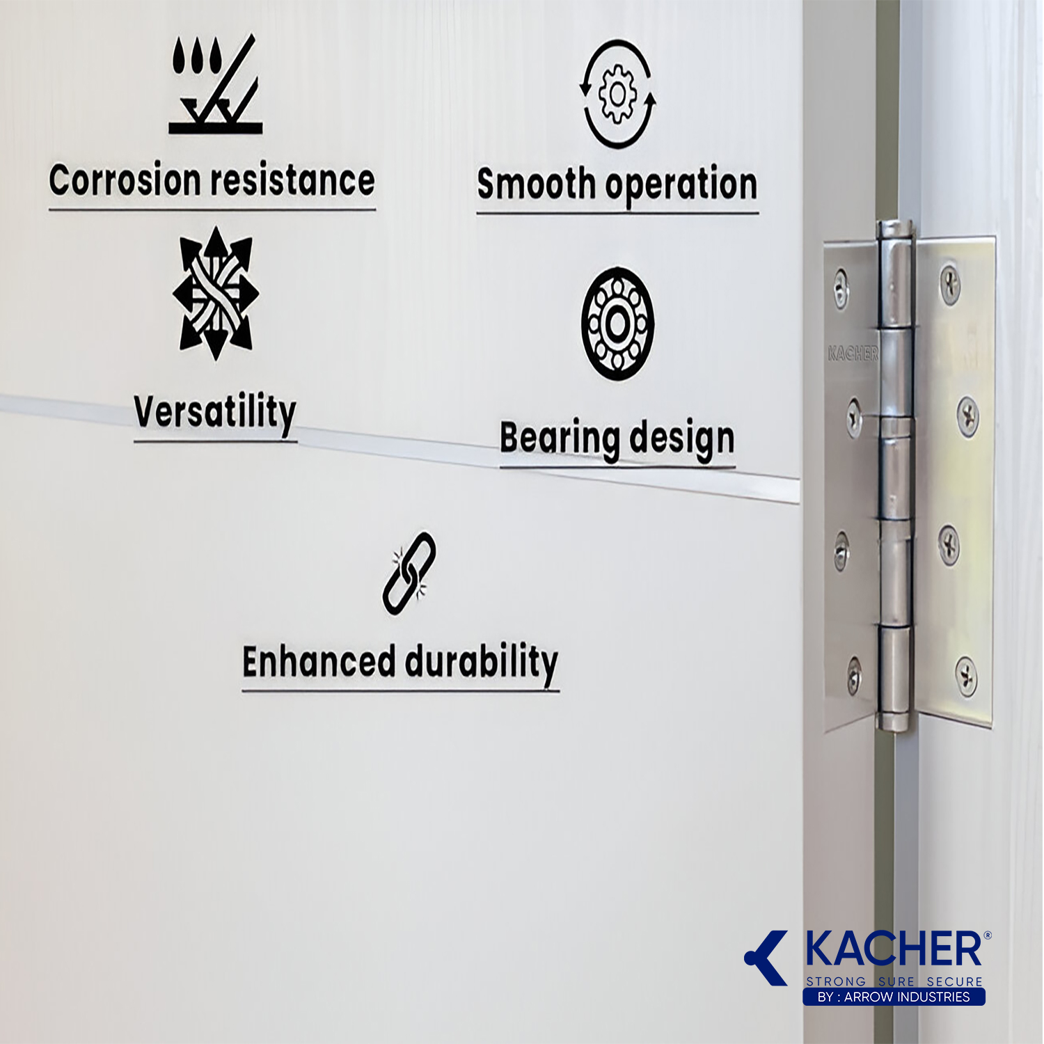 Achieve Consistent and Quiet Operation. Beyond just smoothness, Kacher ball bearing hinges are precision-engineered. They deliver consistent performance. The advanced mechanism ensures quiet movement. It makes them ideal for high-traffic areas. Enjoy a high level of functional efficiency. This contributes to a serene and comfortable environment.