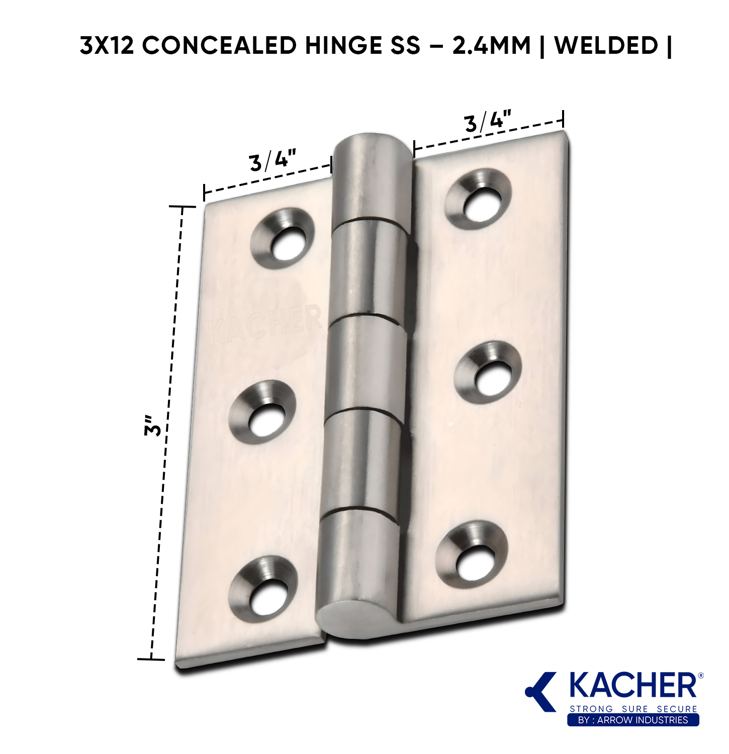 Kacher 3×12 Concealed Hinge SS – 2.4mm | Welded | Heavy-Duty
