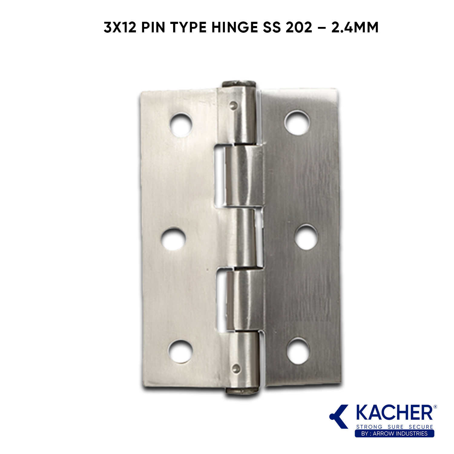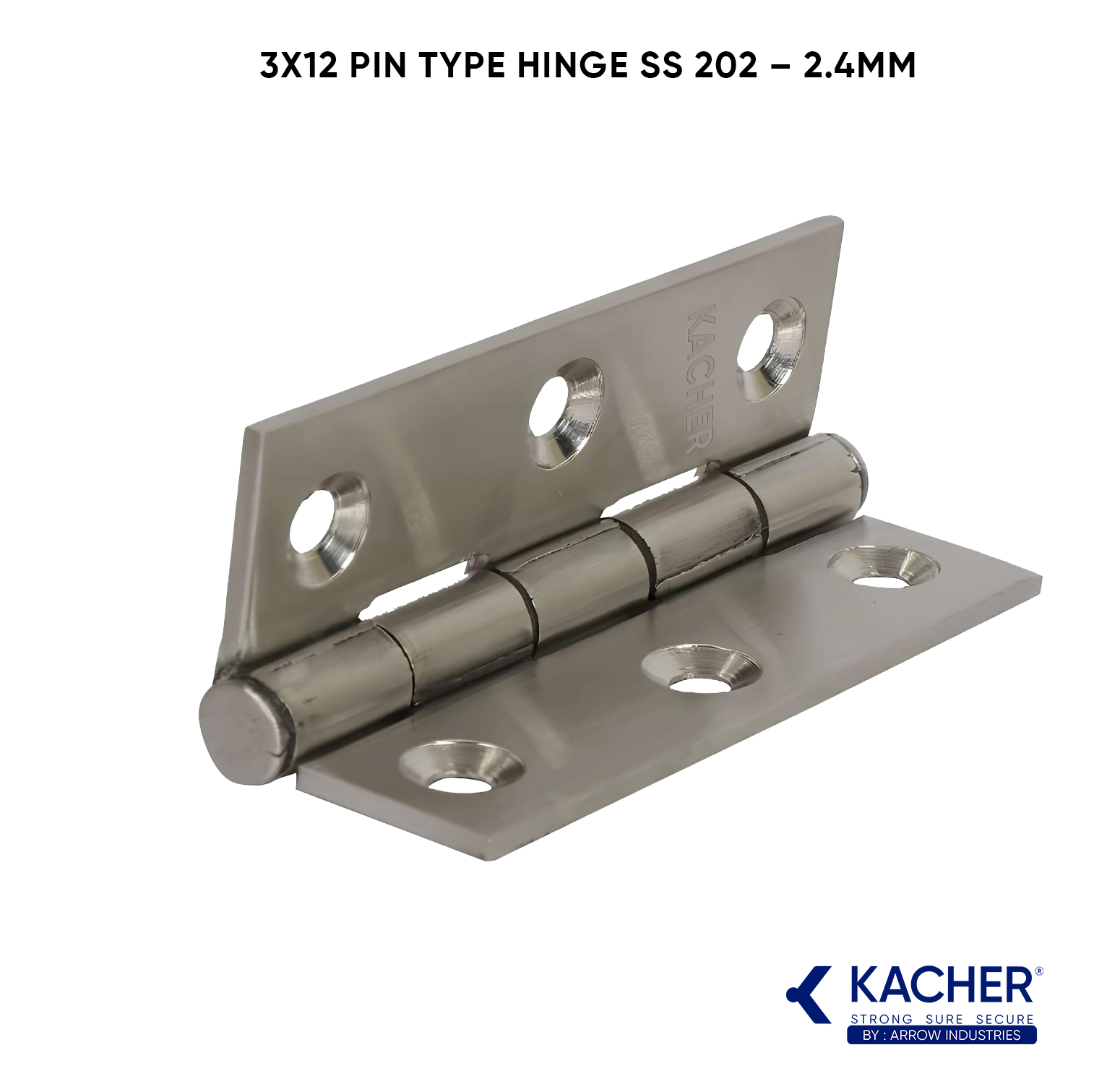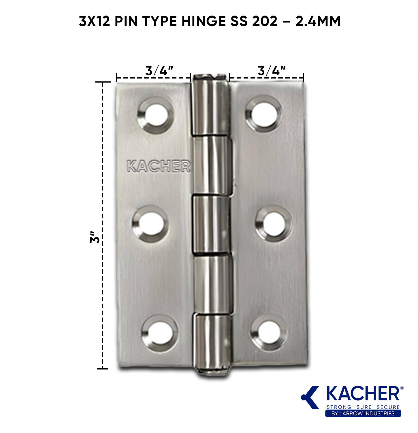 Kacher 3×12 Pin Type Door Hinges SS 202 – Robust, Reliable & Rust-Resistant