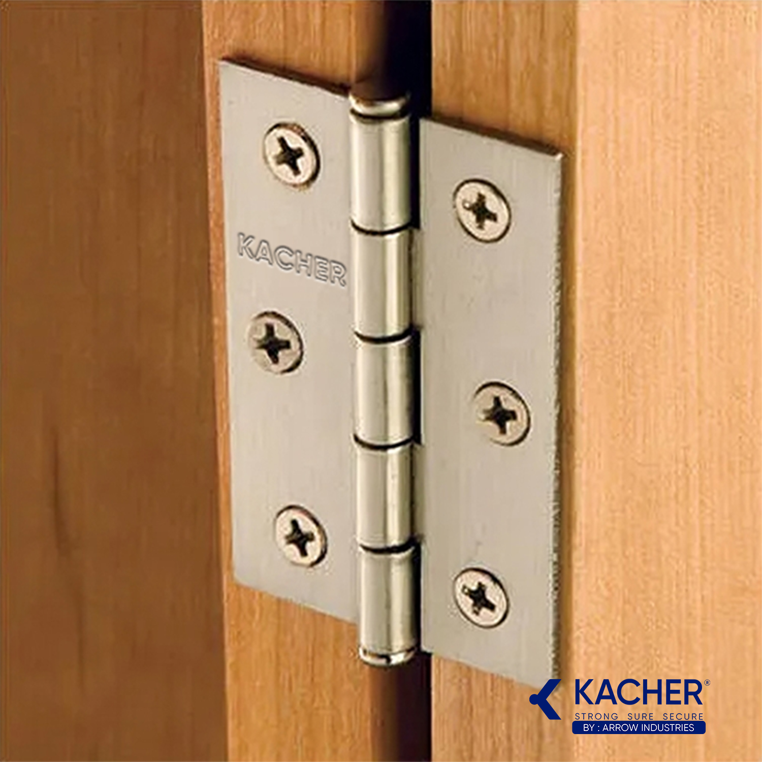 Versatile Applications Across Spaces: These Kacher 3×12 SS 202 pin type hinges are highly versatile, making them suitable for a broad spectrum of applications. They are an excellent choice for main wooden doors, heavy internal doors, large office doors, robust furniture doors, and various commercial installations where durability and consistent performance are key. Their robust nature makes them dependable for high-traffic areas and heavy-duty use.