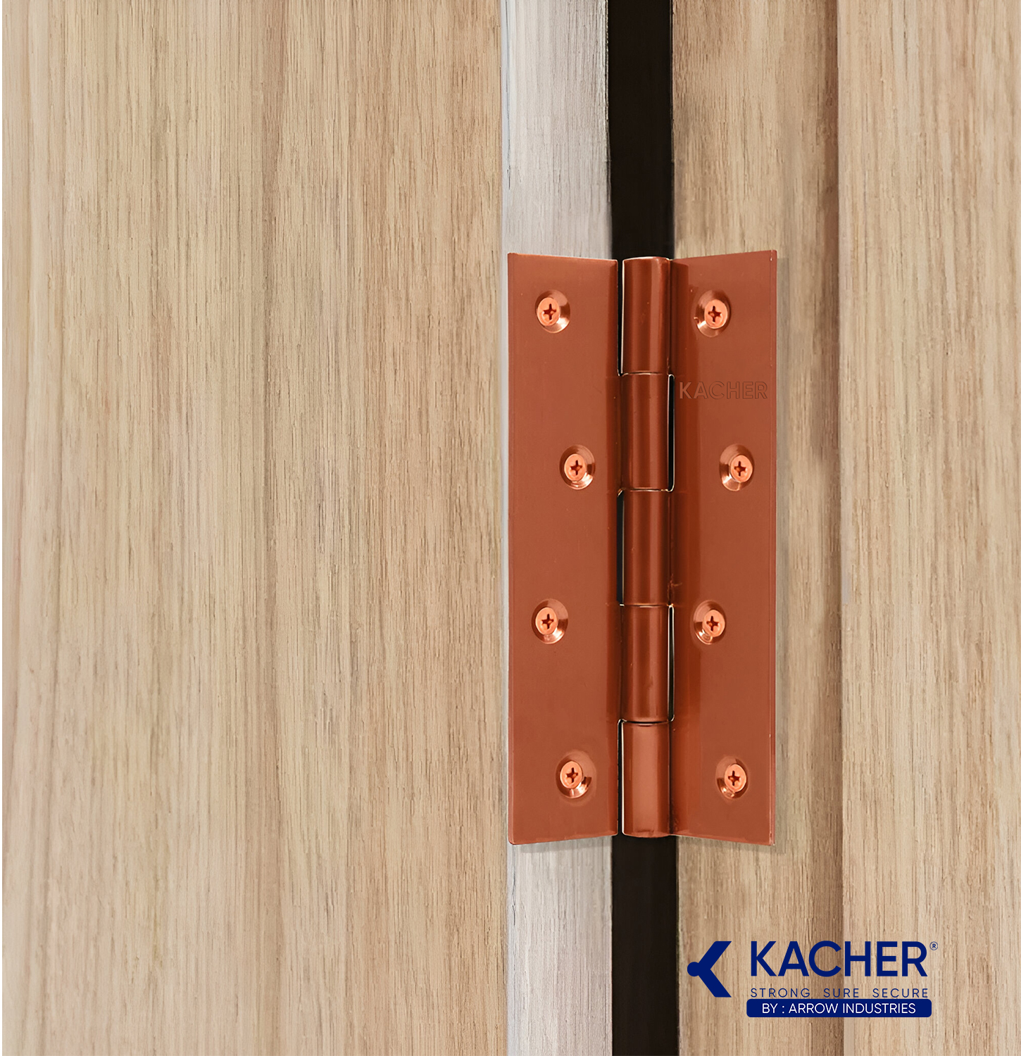 Choose for Upscale Residential & Commercial Projects. The Kacher 5×12″ Rose Gold Butt Hinge is highly versatile. It suits a broad range of demanding applications. It is ideal for heavy main doors, substantial interior doors, luxury furniture, and high-end commercial spaces. Its unique finish allows seamless integration. It brings a touch of modern luxury without compromising strength.