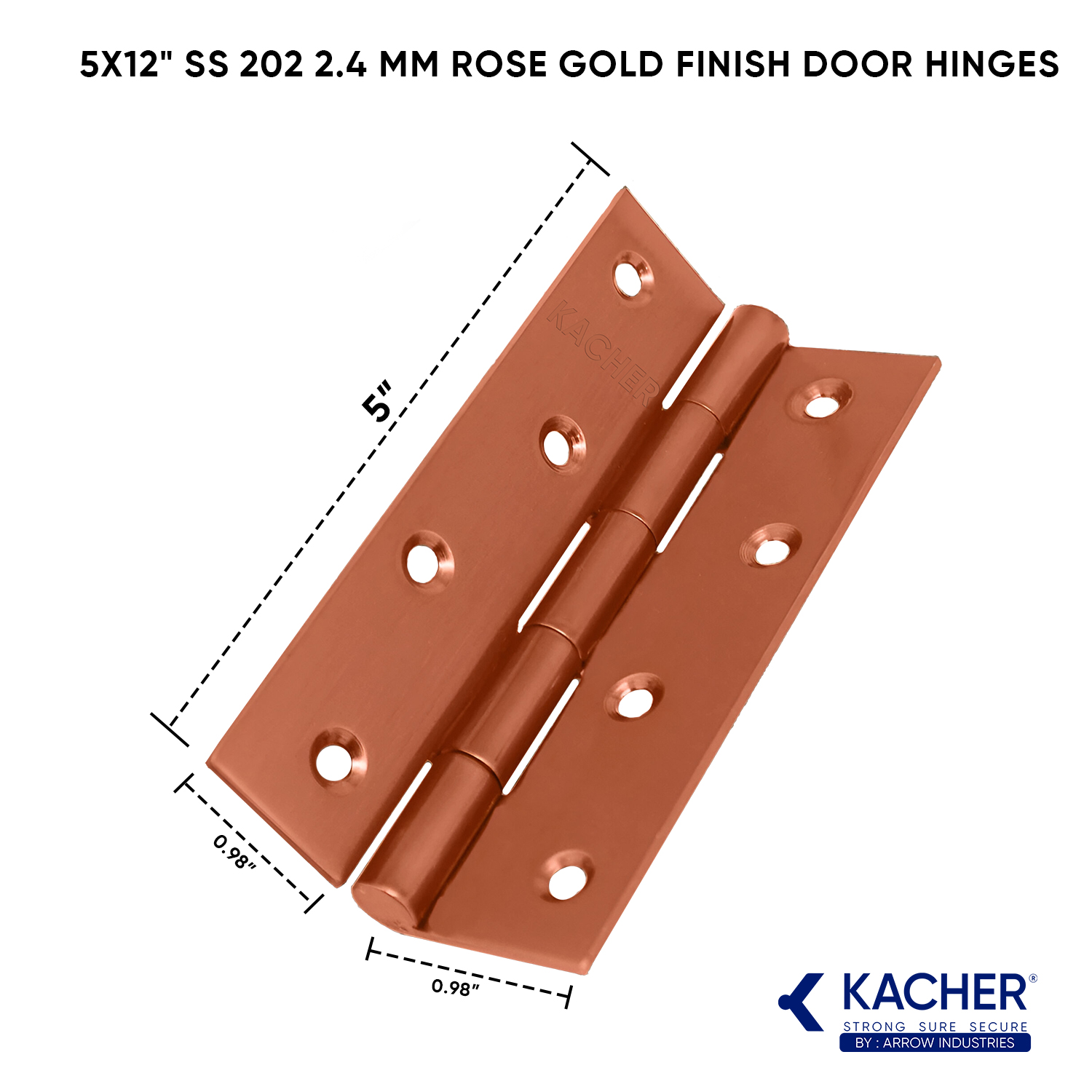 Kacher 5×12″ Rose Gold SS 202 2.4 mm Butt Hinge – Opulent Style, Robust Performance