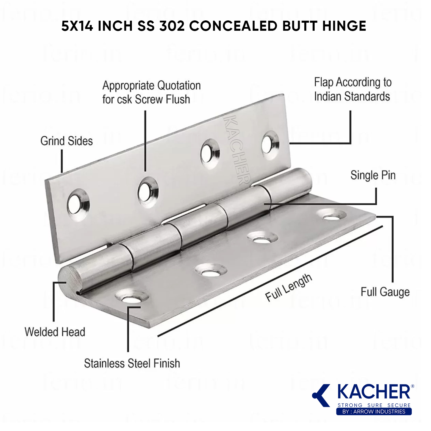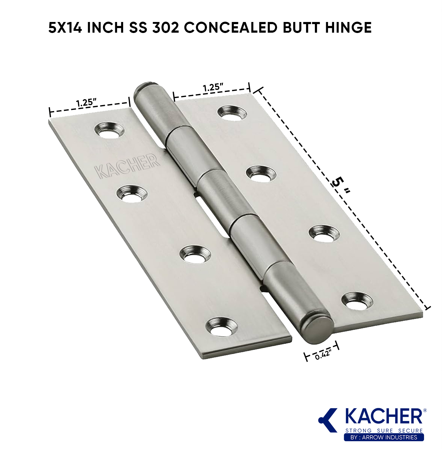 🔍 Also explore: Kacher 5×14 Inch SS 302 Stainless Steel Concealed Butt Hinges – 1.8 mm Thickness, Steel Finish