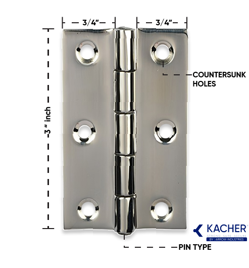 Kacher 3/4″ x 3/4″ Stainless Steel Butt Hinges – Pin type – SS-202 Grade