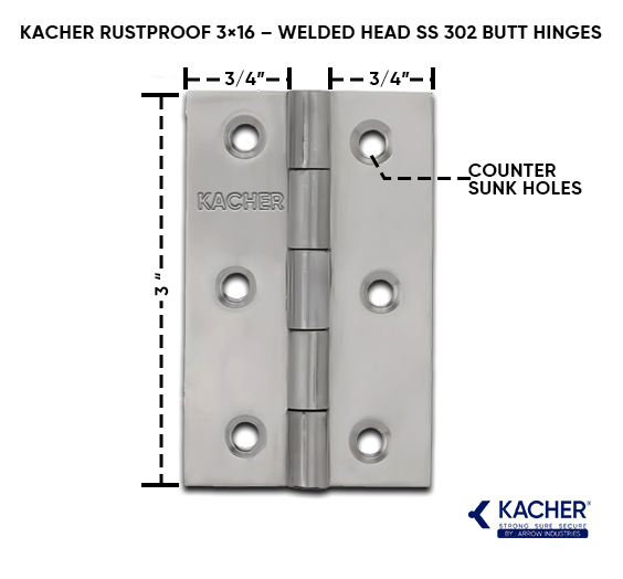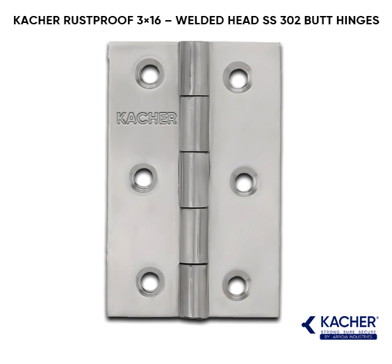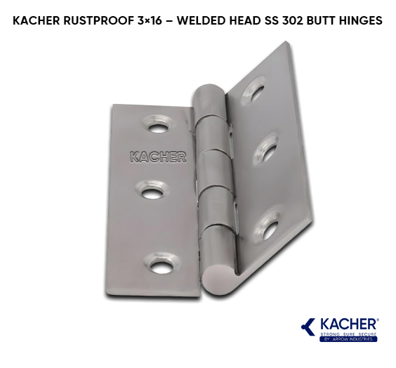 Kacher 3×16 Inch SS 304 Stainless Steel Window Hinges – Welded Head, Heavy-Duty Butt Hinges