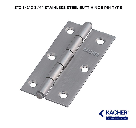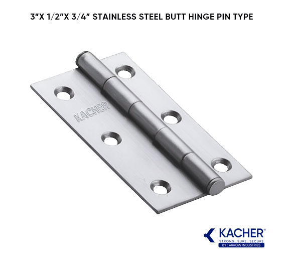 Enhance your home or furniture projects with the Kacher 19mm x 19mm SS-202 Steel Butt Hinges. Designed for durability and smooth performance, these high-quality pin-type cabinet door hinges are perfect for a variety of applications including wardrobes, modular furniture, cabinets, and drawers. Crafted from SS-202 stainless steel, these hinges offer rust-resistance, making them an ideal choice for long-lasting performance in both residential and commercial settings.
